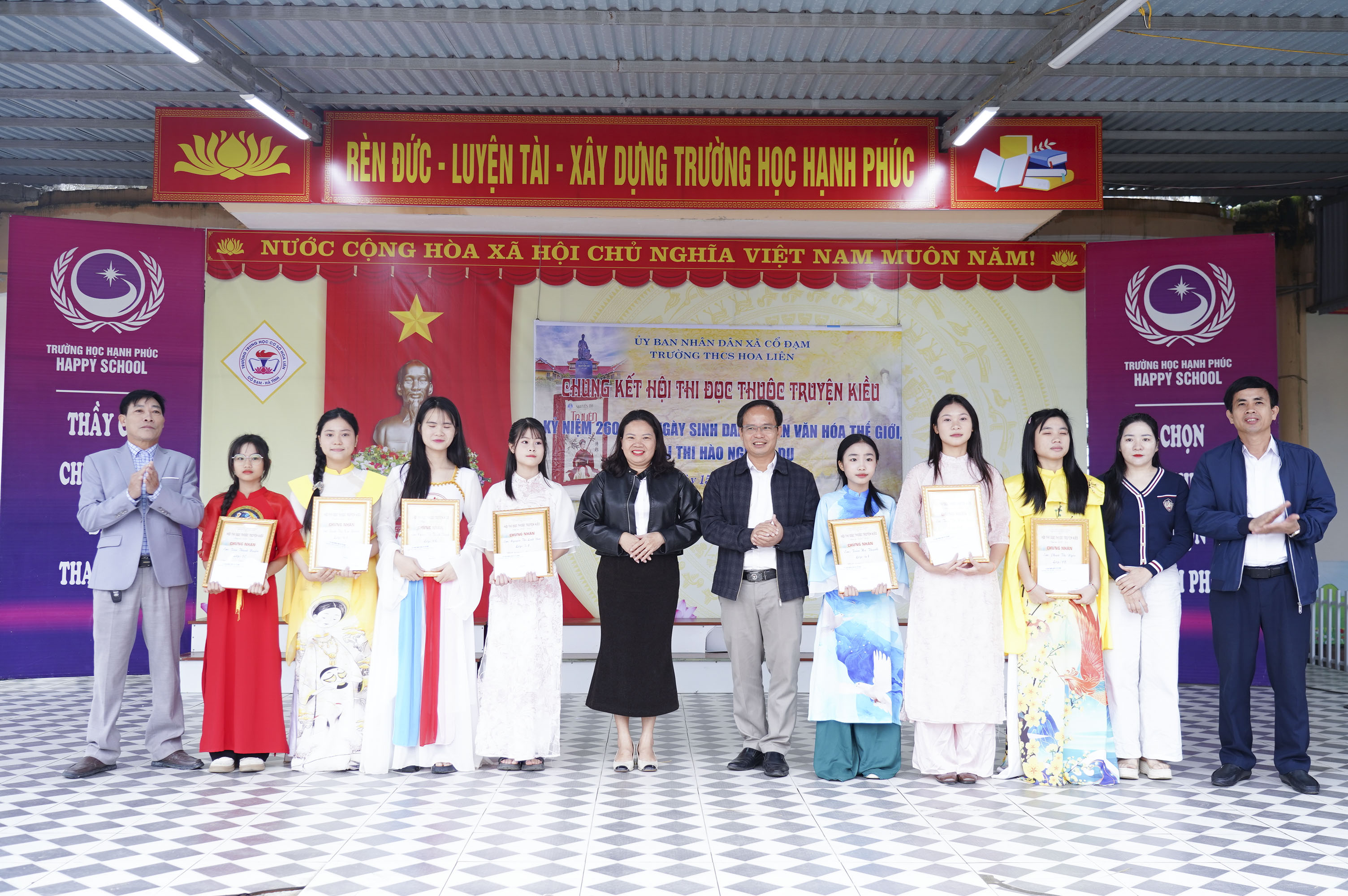 Kết thúc, Ban tổ chức đã tặng giấy chứng nhận và giải thưởng cho cá nhân xuất sắc. Trong ảnh: Lãnh đạo Phòng VHXH, Trường THCS Hoa Liên trao giải cho các thí sinh xuất sắc.