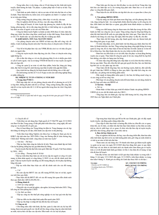 Trên cơ sở tổng hợp báo cáo của các phòng, ban, đơn vị, Văn phòng HĐND - UBND xã báo cáo tình hình và kết quả thực hiện nhiệm vụ trong Tuần 3 tháng 11 (từ ngày 15/11/2025 đến ngày 21/11/2025) và triển khai nhiệm vụ trọng tâm Tuần 4 tháng 11 như sau: