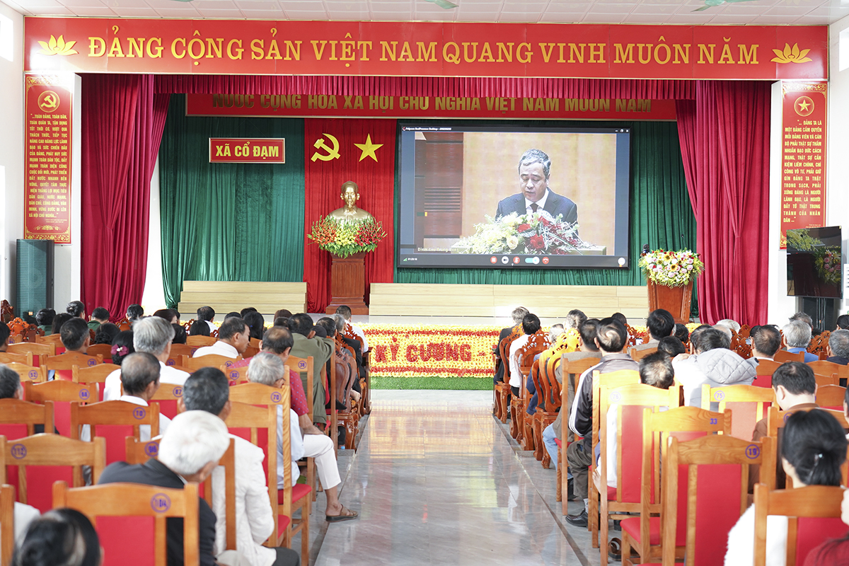 Tham gia điểm cầu Đảng uỷ xã Cổ Đạm có Bí thư Đảng uỷ Phan Văn Thư, Phó Bí thư Thường trực Đảng uỷ Lê Tiến Hải, Chủ tịch UBND xã Nguyễn Văn Tuấn, các Uỷ viên BTV Đảng uỷ, toàn thể cán bộ, đảng viên trong toàn Đảng bộ.