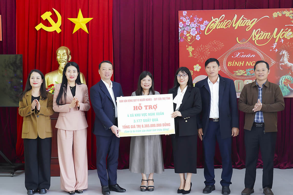 Nhân dịp này, Chủ tịch UBND tỉnh Phan Thiên Định và đoàn công tác trao hỗ trợ của Ban vận động Quỹ Vì người nghèo cho 4 xã khu vực Nghi Xuân.
