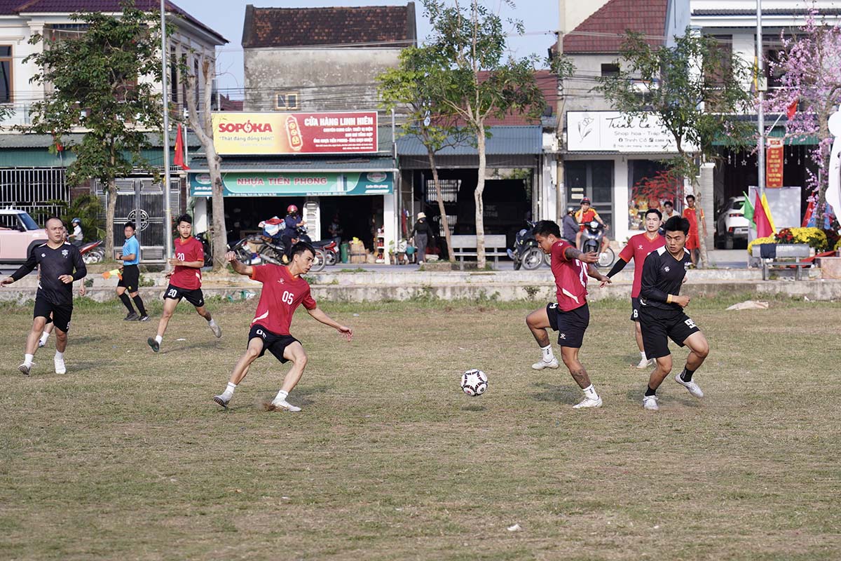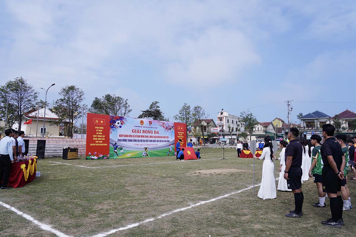 Ngay sau lễ khai mạc, các trận đấu đã diễn ra sôi nổi, hấp dẫn, thu hút sự quan tâm, cổ vũ nhiệt tình của đông đảo cán bộ và Nhân dân địa phương. Trong ảnh: Lãnh đạo xã Cổ Đạm trao cờ lưu niệm cho các đội tham gia.