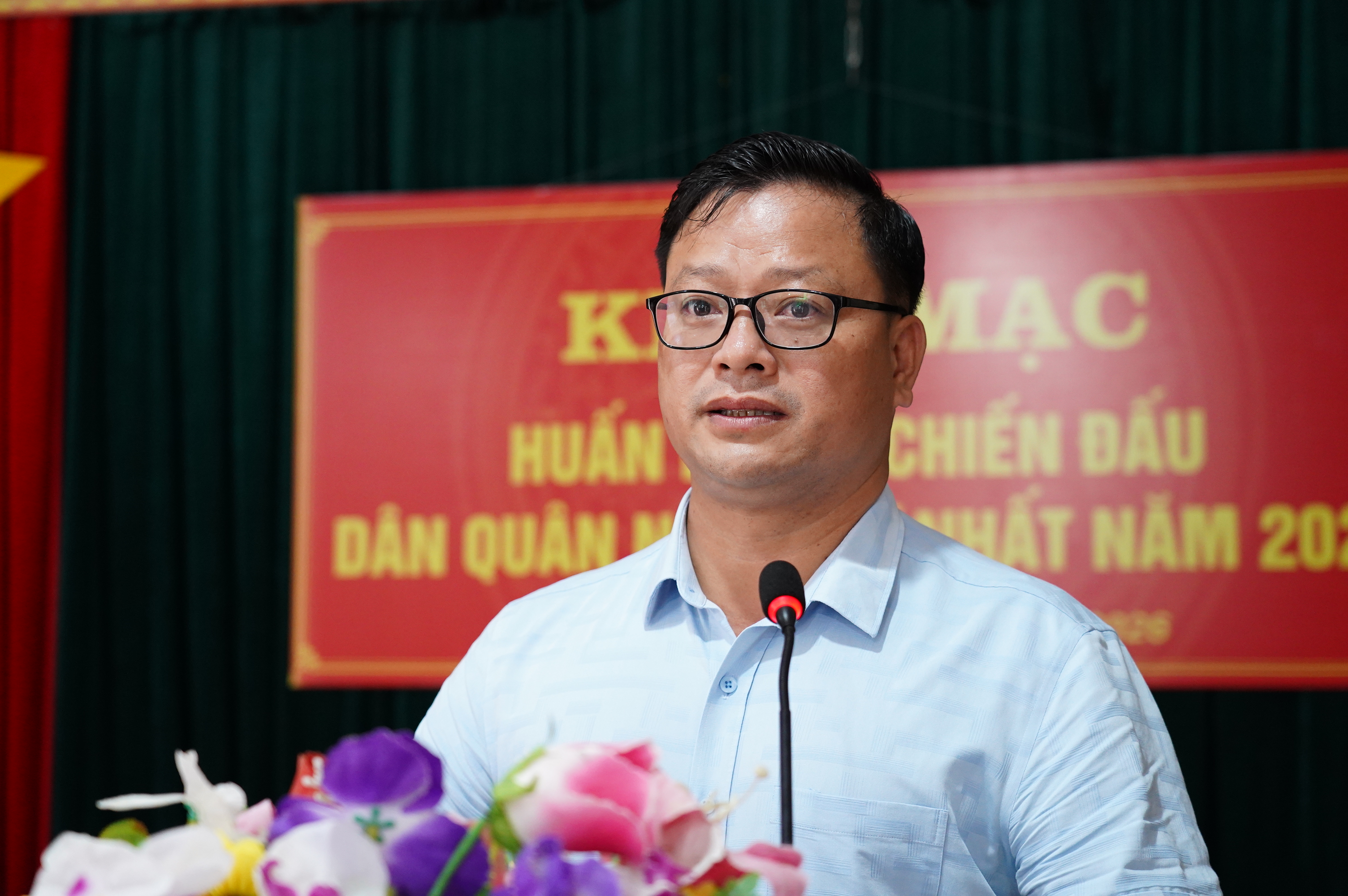 Phó Chủ tịch UBND xã Hoàng Văn Hà phát biểu tại lễ khai mạc.