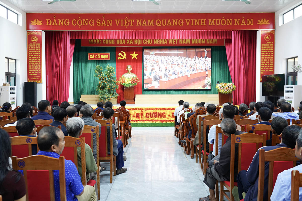 Tham gia điểm cầu ở xã Cổ Đạm có Bí thư Đảng ủy Phan Văn Thư, Phó Bí thư Thường trực Đảng ủy Lê Tiến Hải, Chủ tịch UBND xã Nguyễn Văn Tuấn, các ủy viên BTV Đảng ủy, đảng viên các đảng bộ, chi bộ trên địa bàn.