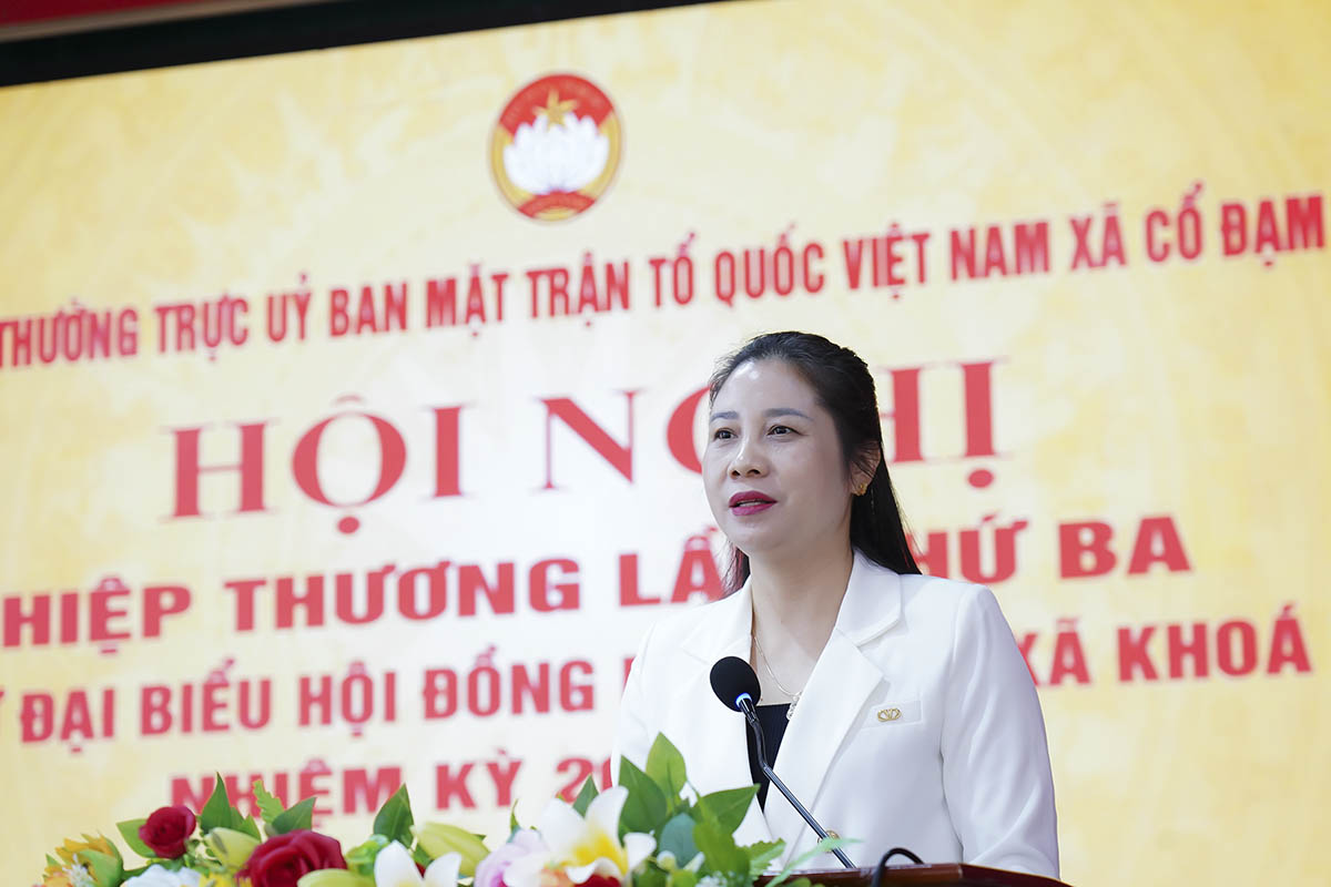 Chủ tịch UBMTTQ xã Nguyễn Thị Thu Trang điều hành hôị nghị.