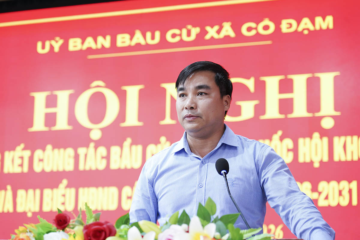Đồng chí Nguyễn Văn Tuấn – Phó Bí thư Đảng ủy - Chủ tịch UBND xã – Phó Chủ tịch Ủy ban bầu cử xã trình bày báo cáo tổng kết công tác bầu cử đại biểu Quốc hội khóa XVI và đại biểu Hội đồng nhân dân các cấp nhiệm kỳ 2026 -2031.