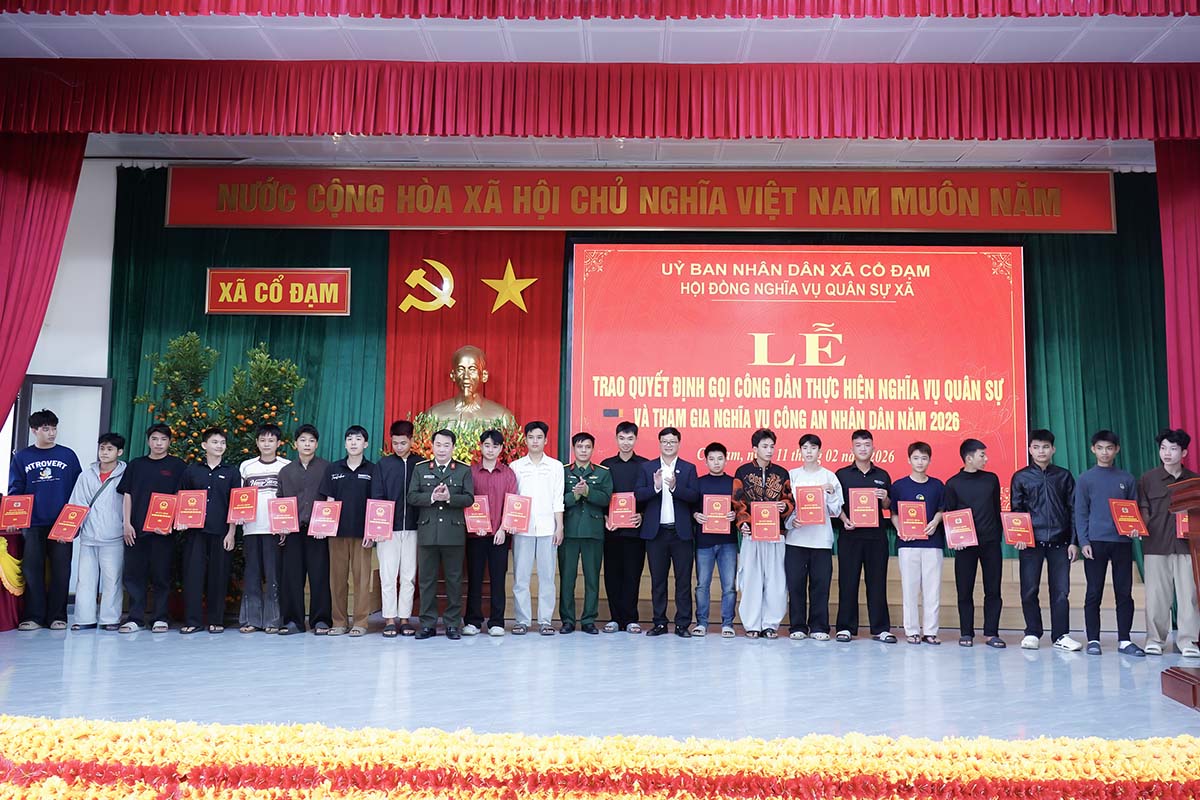 Năm 2026, xã Cổ Đạm được giao tuyển chọn 29 công dân tham gia nghĩa vụ quân sự và 6 công dân tham gia nghĩa vụ công an nhân dân. Để hoàn thành chỉ tiêu giao quân năm nay, Hội đồng nghĩa vụ quân sự xã đã thực hiện đầy đủ các bước quy trình tuyển chọn và gọi công dân nhập ngũ hết sức chặt chẽ, công bằng và đúng quy định pháp luật. Tại buổi lễ, lãnh đạo xã Cổ Đạm đã trao quyết định gọi cho 40 công dân nhập ngũ (trong đó có 5 dự phòng).