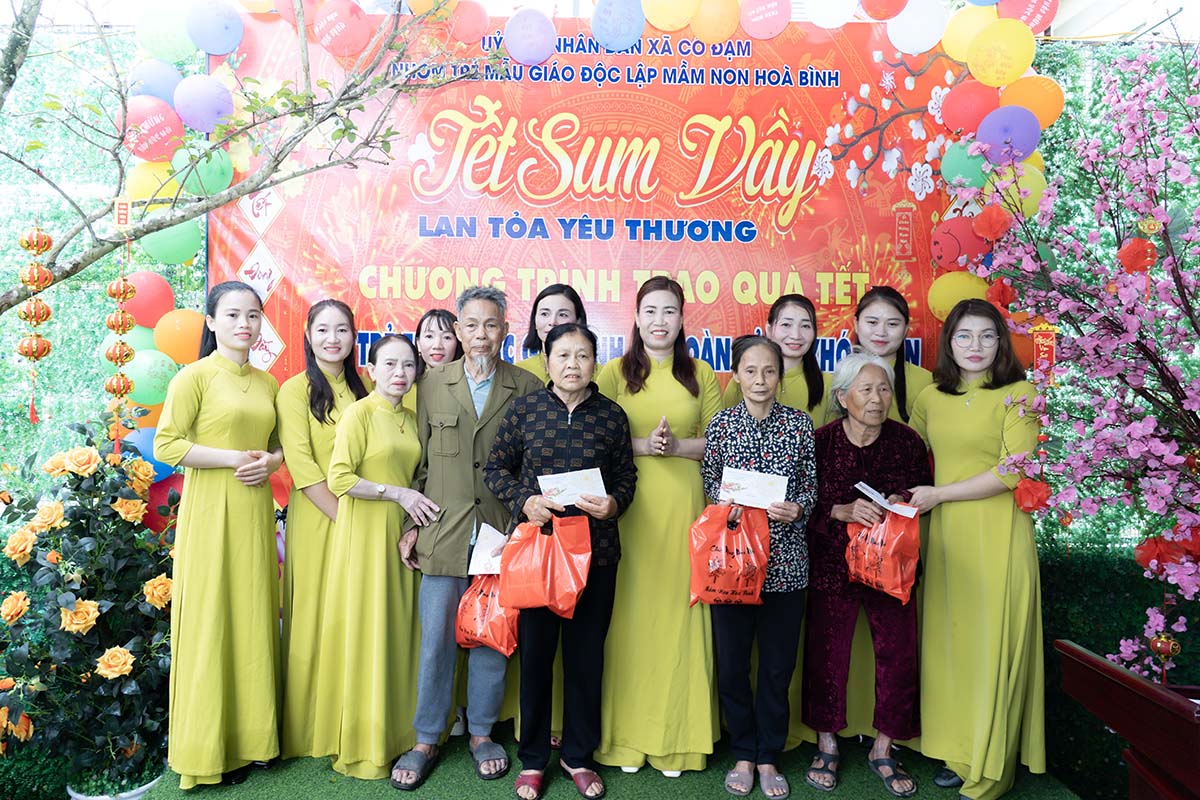 Tại chương trình, nhà trường đã trao 37 suất quà, mỗi suất gồm bánh chưng và tiền mặt. Tổng kinh phí thực hiện chương trình gần 18 triệu đồng được huy động từ sự đóng góp của cán bộ, giáo viên, nhân viên cơ sở Mầm non Hòa Bình.