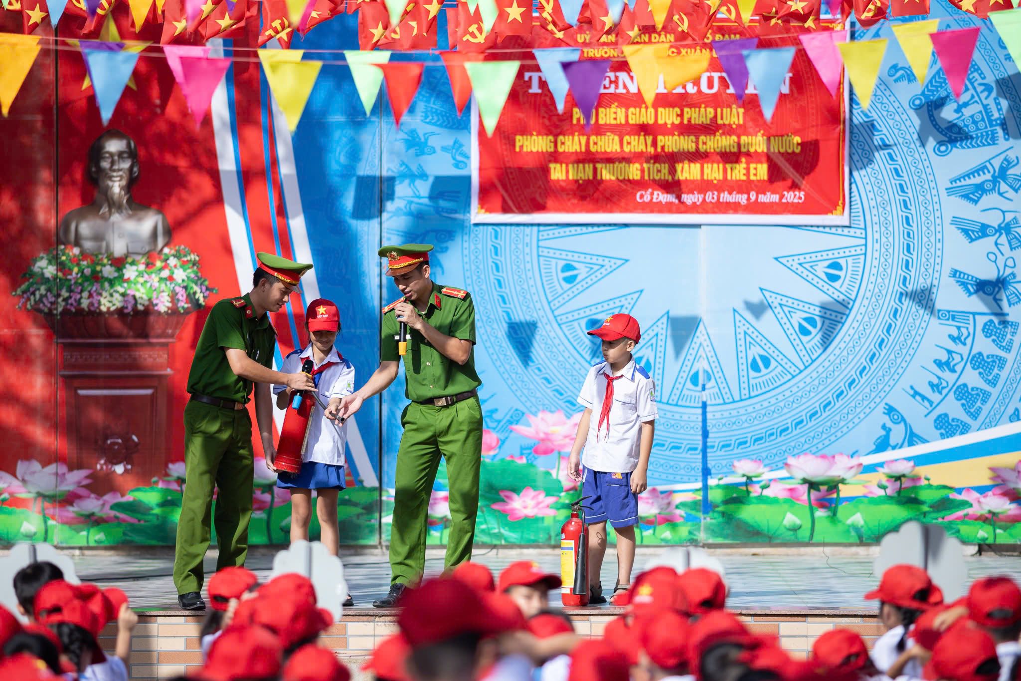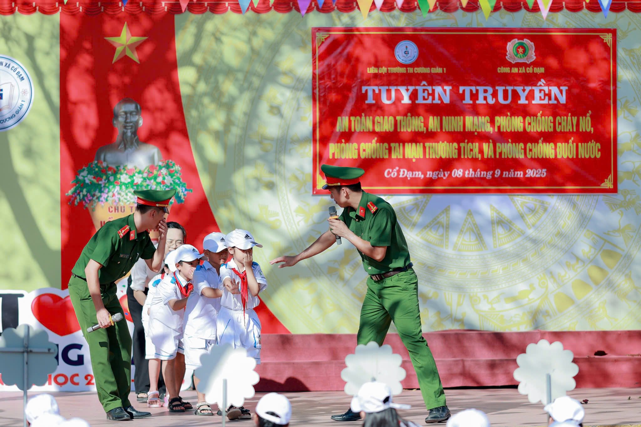 Ngày 04/9/2025, chương trình tiếp tục được triển khai tại Trường Tiểu học Cổ Đạm, thu hút sự tham gia của đông đảo thầy cô và học sinh, tập trung vào nội dung an toàn giao thông, phòng chống cháy nổ