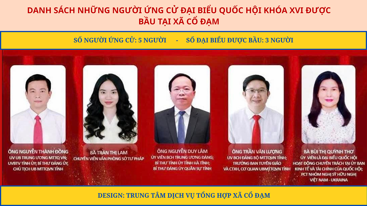 Danh sách những người ứng cử Đại biểu Quốc hội khóa XVI được bầu tại xã Cổ ĐạmĐức Đồng27/02/2026A -A+Đức Đồng27/02/2026A -A+Danh sách những người ứng cử Đại biểu Quốc hội khóa XVI được bầu tại khu vực xã Cổ Đạm Đức Đồng