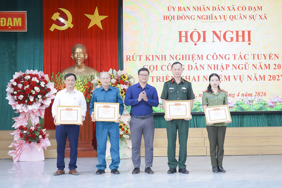 Tại hội nghị, đã trao thưởng giấy khen của Chủ tịch UBND xã cho 5 tập thể và 5 cá nhân vì đã có nhiều thành tích xuất sắc trong thực hiện công tác tuyển chọn, gọi công dân nhập ngũ năm 2026.
