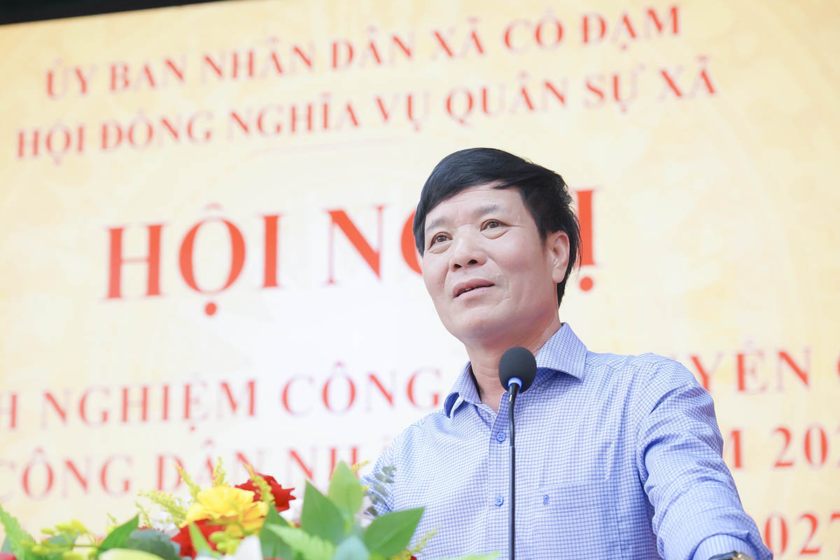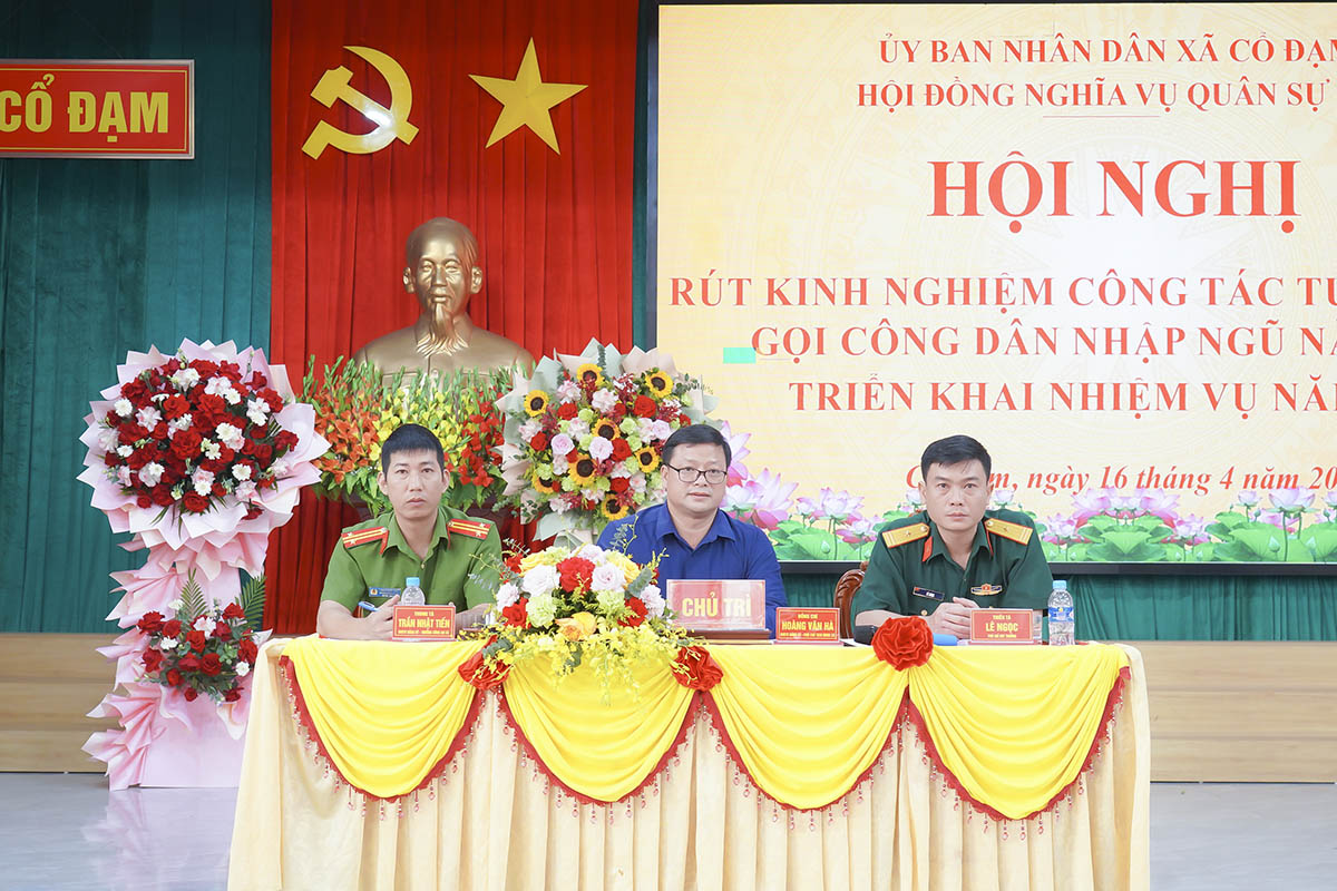 Trong năm 2026, công tác tuyển chọn, gọi công dân nhập ngũ của xã Cổ Đạm đã hoàn thành 100% chỉ tiêu giao nhận quân với 35 công dân lên đường nhập ngũ, trong đó thực hiện nghĩa vụ quân sự là 29 công dân, công an nhân dân là 6 công dân, đảm bảo tốt các tiêu chuẩn về chính trị, sức khỏe và trình độ văn hóa.