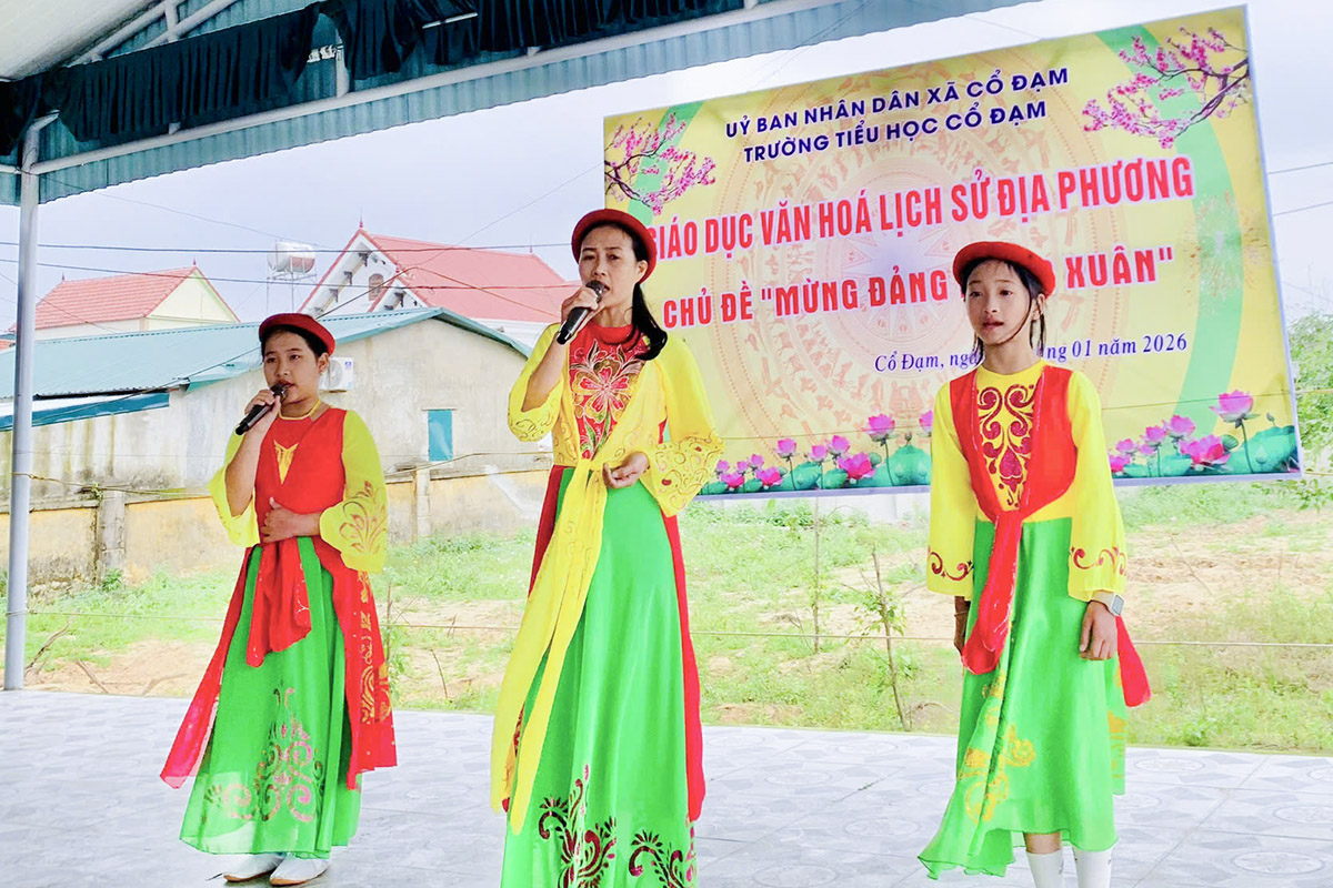 Dưới mái đình cổ kính của di tích quốc gia Đình Hoa Vân Hải, không còn sự tĩnh lặng của thời gian mà là tiếng nói rộn ràng của cô trò Trường Tiểu học Cổ Đạm tham gia hoạt động trải nghiệm giáo dục văn hóa lịch sử địa phương với chủ đề “Mừng Đảng – Mừng Xuân”. Đây là một 'tiết học không phấn trắng' đầy sáng tạo, giúp các em học sinh hướng về cội nguồn hưởng ứng ngày thành lập Đảng Cộng sản Việt Nam (3/2/1930), đồng thời tạo thi đua lập thành tích chào mừng 95 năm ngày thành lập Đoàn TNCS Hồ Chí Minh (26/3/1931).