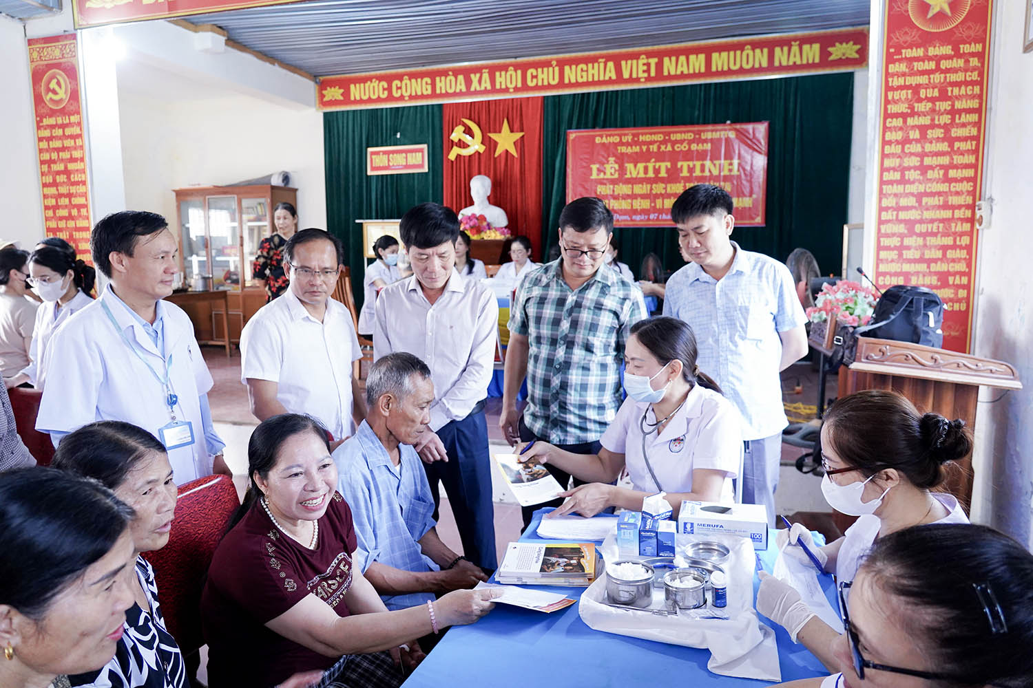 Tại chương trình, các bác sỹ, nhân viên Trạm Y tế xã Cổ Đạm tổ chức khám cho hơn 340 người dân trên địa bàn thôn Song Nam.