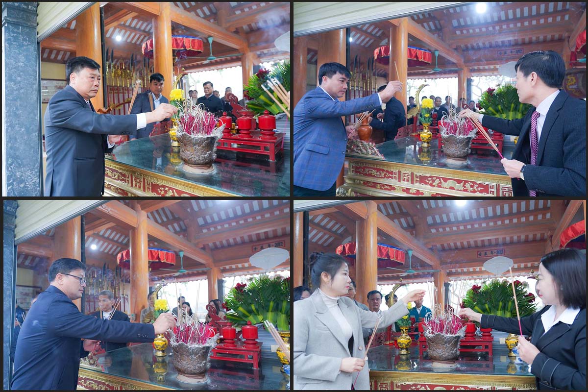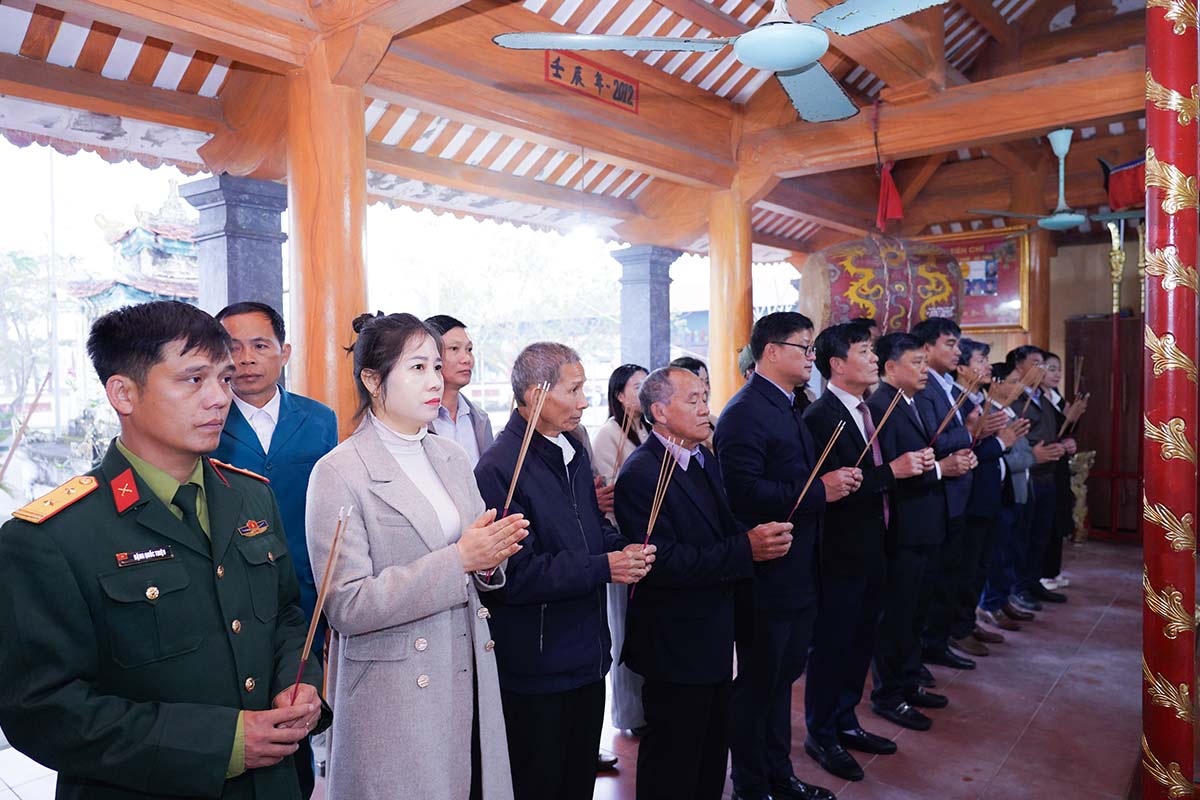 Lãnh đạo xã Cổ Đạm dâng hương tại di tích Đình hoa Vân Hải.