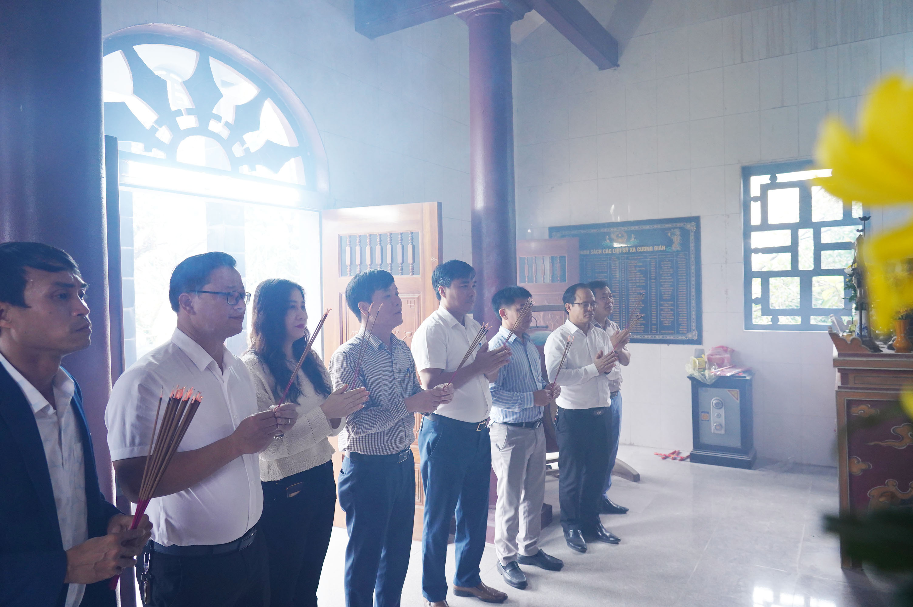 Tại đây, các đồng chí lãnh đạo xã đã dâng hương bày tỏ lòng tri ân sâu sắc của các anh hùng, liệt sỹ đã anh dũng hy sinh vì sự nghiệp giải phóng dân tộc, thống nhất đất nước.