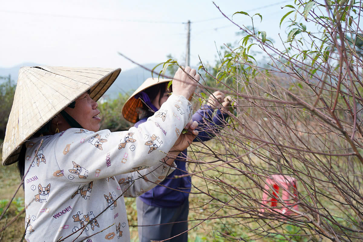 Đào phai ở xã Cổ Đạm có dáng cây đẹp, nụ hoa to, cánh đẹp màu hồng nhạt... Theo người trồng đào, thời điểm tuốt lá phải được tính toán rất kỹ, phụ thuộc nhiều vào thời tiết. Công việc này kéo dài nhiều ngày, thậm chí cả tuần, vì thể nhiều gia đình trồng đào huy động cả nhà cùng làm. Năm nay, do ảnh hưởng của cơn bão số 5 và số 10, số lượng đào bị thiệt hại khá lớn. Tuy nhiên, người dân nơi đây và lạc quan, từng bước khắc phục khó khăn, chăm sóc để cây đào ra hoa dịp tết “đúng hẹn”.