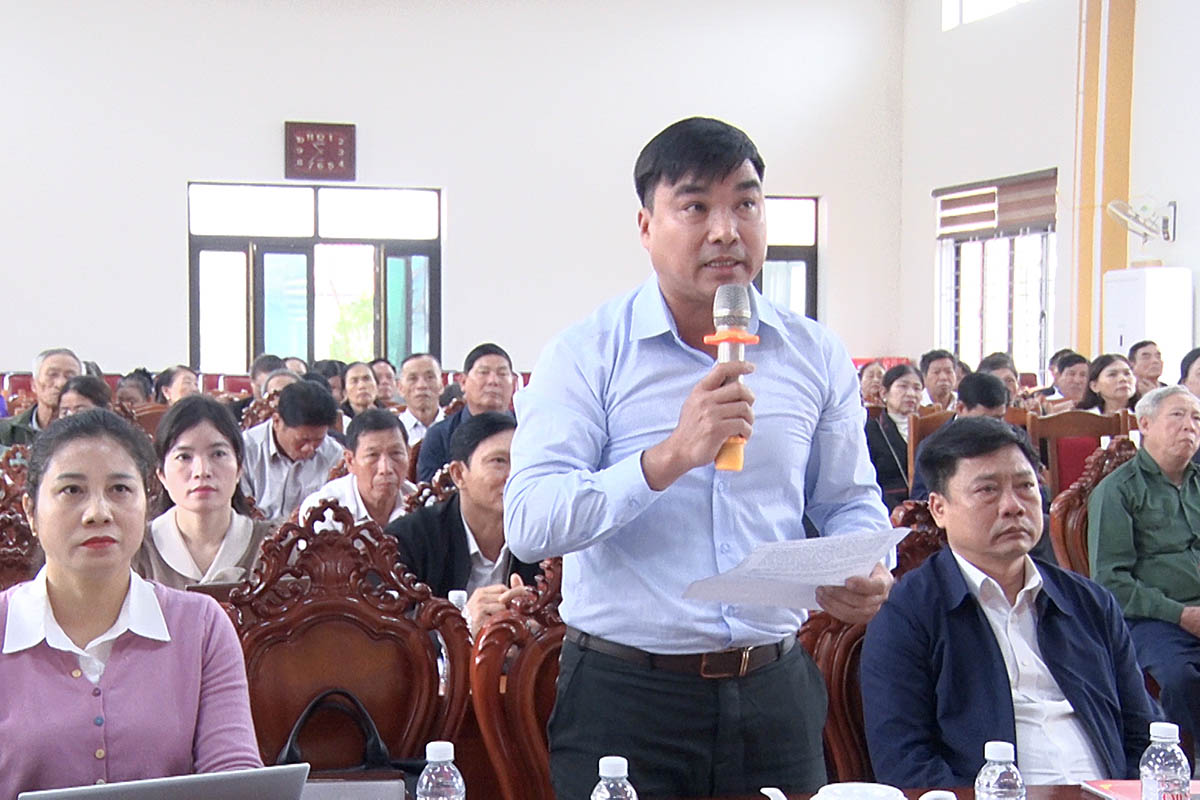 Chủ tịch UBND xã Cổ Đạm Nguyễn Văn Tuấn kiến nghị một số vấn đề tại hội nghị.