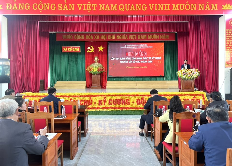 Tham dự lớp tập huấn có đồng chí Lê Văn Đương - Trưởng phòng Công nghệ thông tin và Chuyển đổi số tỉnh; đồng chí Hoàng Văn Hà - Phó Chủ tịch Ủy ban nhân dân xã Cổ Đạm; cùng lãnh đạo và công chức phòng Văn hóa - Xã hội.