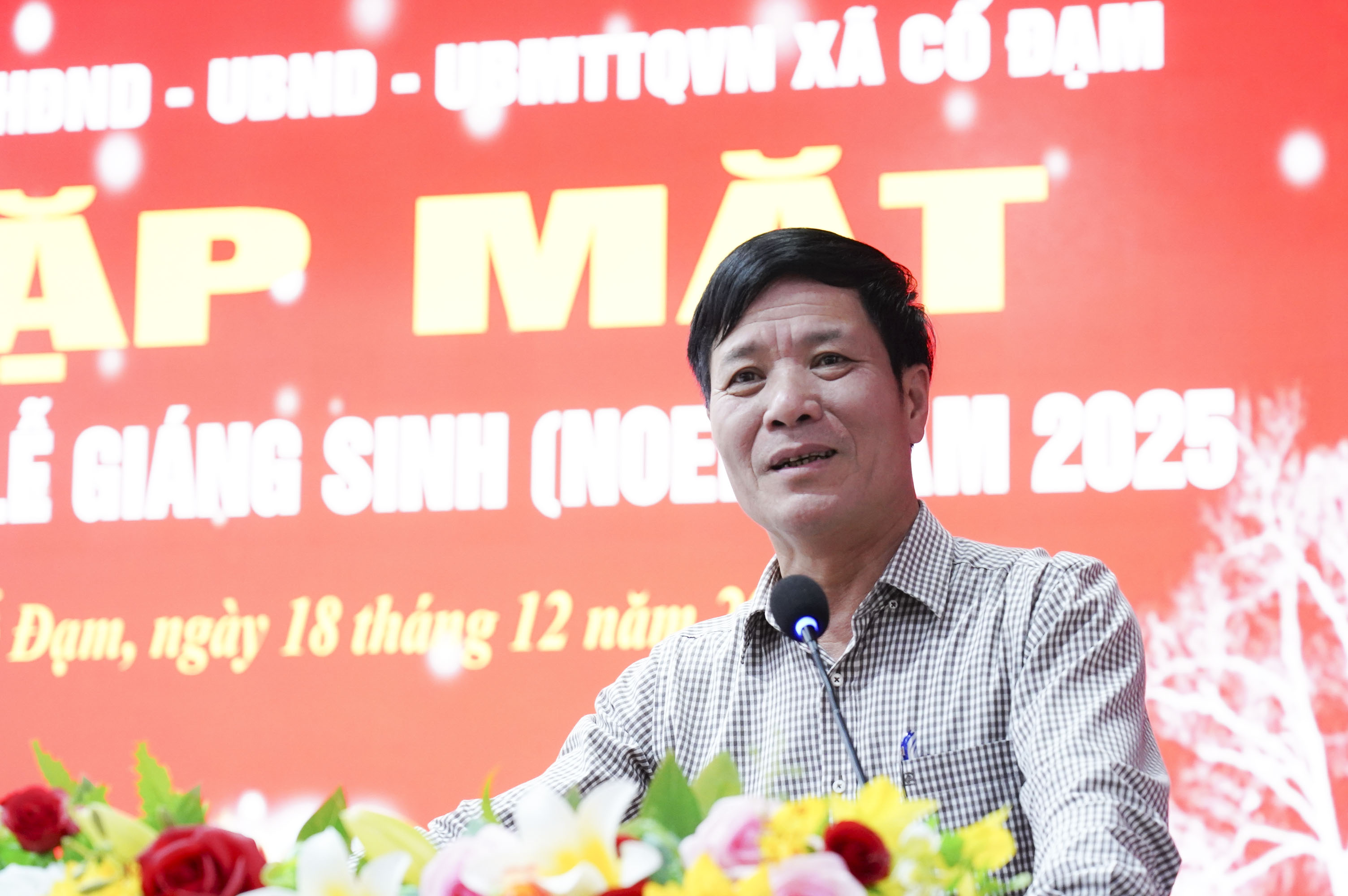 Phát biểu tại buổi gặp mặt, Phó Bí thư Thường trực Đảng ủy Lê Tiến Hải đã gửi lời chúc mừng tới Linh mục Thân Văn Chất cùng đồng bào công giáo nhân dịp Lễ Giáng sinh 2025.