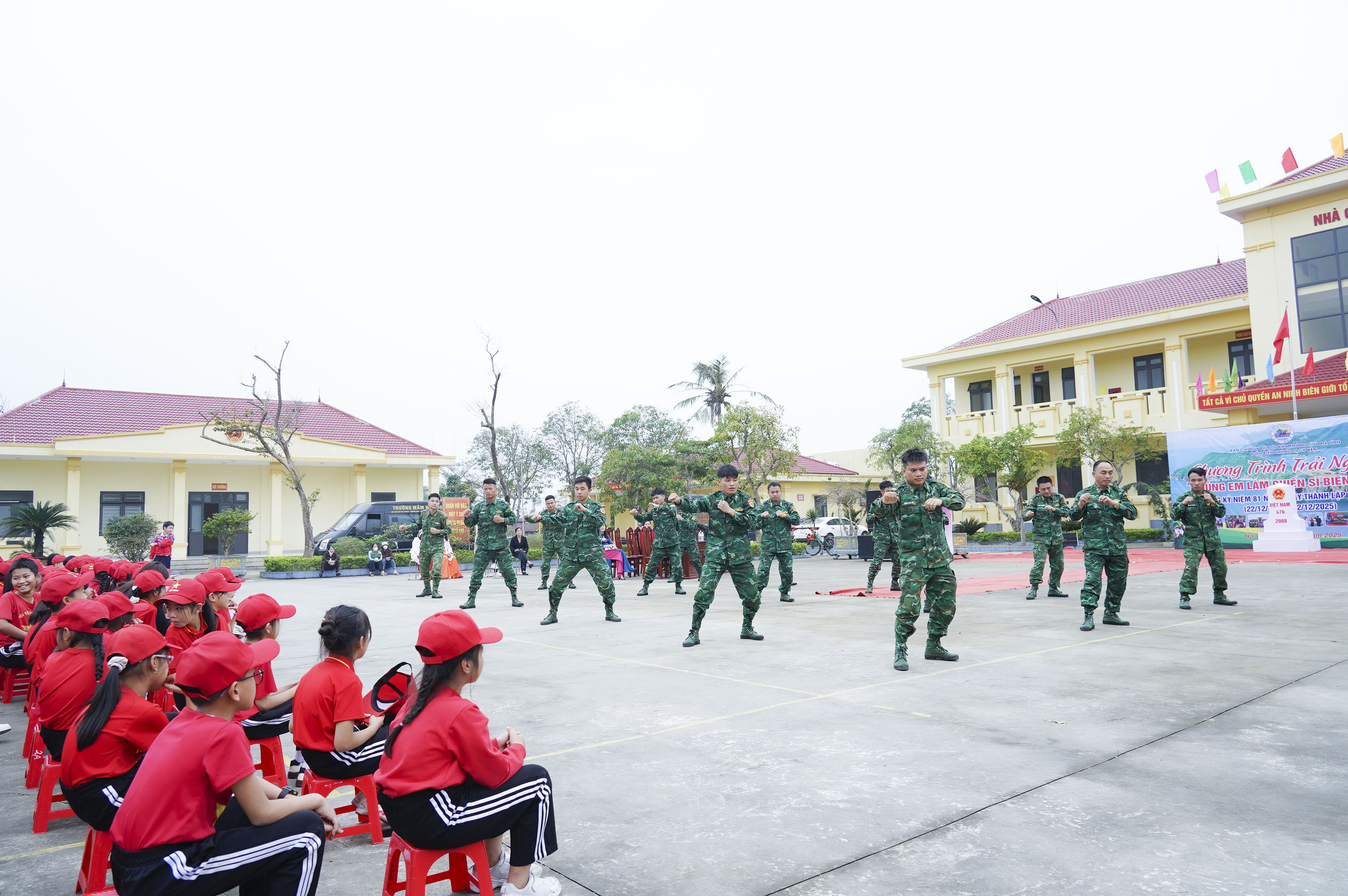 Tại chương trình, các em học sinh được giao lưu văn nghệ cùng các chú bộ đội.